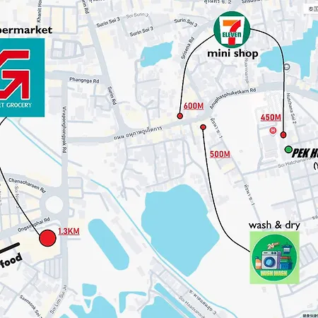 O apartamento Pek House Apartamento está localizado a 2 km do centro de Phuket e oferece acomodação com estacionamento nas proximidades. Esta propriedade inclui 7 quartos completos com zona de vestir e escrivaninha.